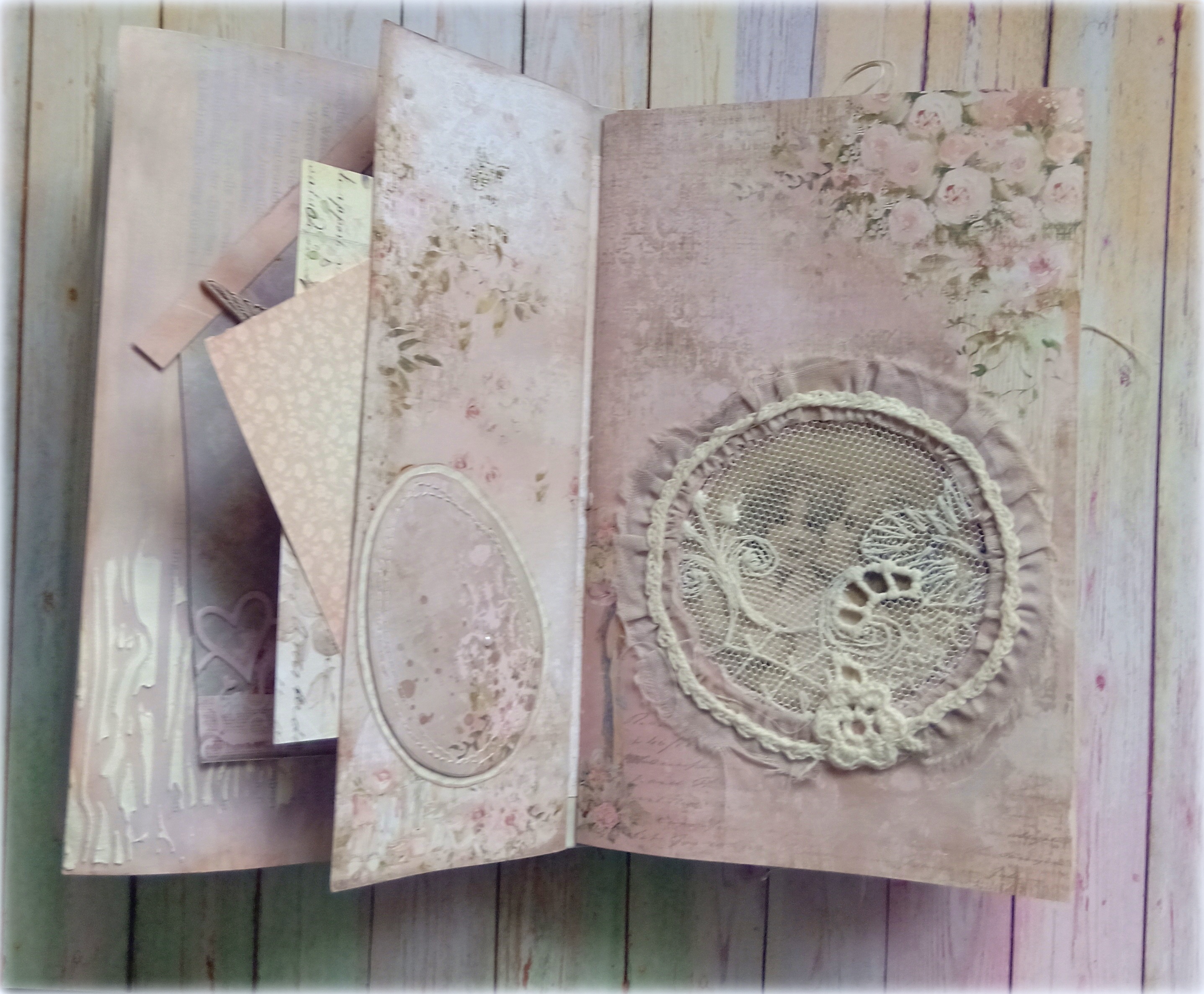 Tu strony ozdabia kieszeń z mojego płaskiego wianuszka . Podkleiłam wianuszek pergaminem .